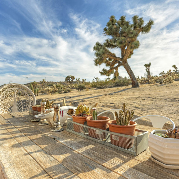 There's a wonder to this place, a kind of rugged majesty. It gets inside you when you're here, a gentle calm. It comes upon you slowly, like the high desert sun setting above you; your mood will shift in gradients of pinks and soft whites until there's nothing but you, the house aglow, the view of the valley stretching out below you forever. Draw a bath outside or have dinner with friends at the back table and watch the desert tortoises lumber under the Joshua Trees. This place is special.
