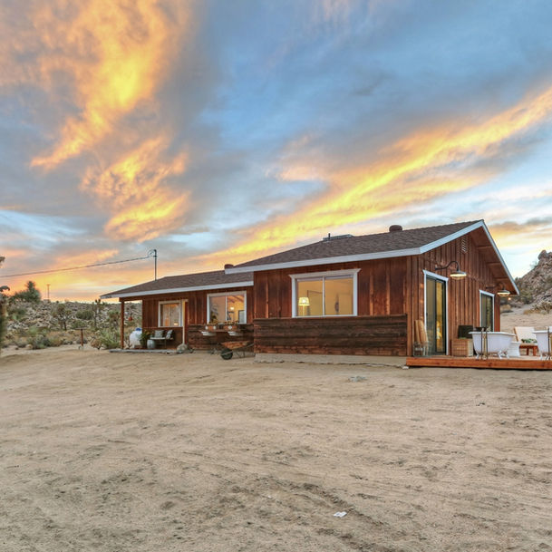 Welcome to La Luna Cabin! A rustic meets modern getaway sitting on 5 untouched acres of wild California high desert complete with dozens of Joshua Trees, desert tortoises, road runners, jackrabbits and more! Surrounded by native flora and fauna, this jewel box is the perfect place to unwind and explore the magic and majesty of the high desert. Enjoy the wild outdoors or relax in the casual-chic indoors, a bath under the stars, or any of the other treats this unique property has to offer.