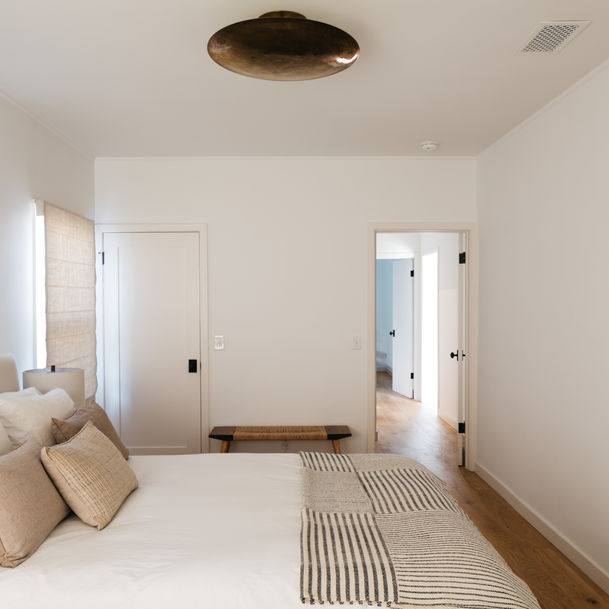 Step through the front door of this modern minimal Spanish bungalow and you'll see right away that something unique is happening here. There's a way that light moves across this house. Steeped with aliveness and intentionality, dark and light textures playfully juxtapose themselves between the perfect placement of every furniture piece. There is an illumination here, a kind of lightening - of the space itself and of the heart of anyone who steps inside.